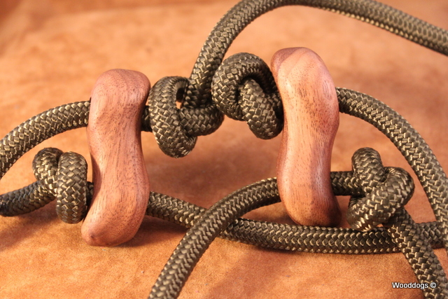 Pirsch/ Retrieverleine aus dunkelgrüner Reepschnur mit Nussbaum Knebeln